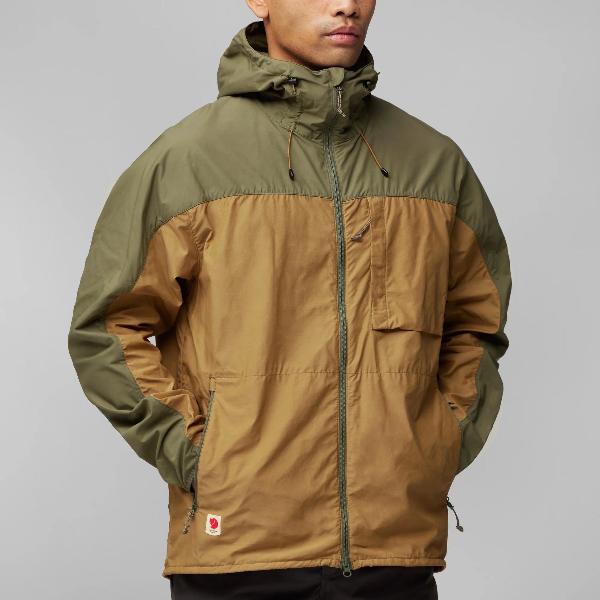 Light, pliant and packable wind jacket in waxed polyamide/organic cotton. A practical jacket for many kinds of outdoor life – hiking, paddling or cycling. Adjustable hood and three zippered pockets for small items. Sleeve cuffs with elastic edging. Waxed to make the jacket water-resistant in light rain.